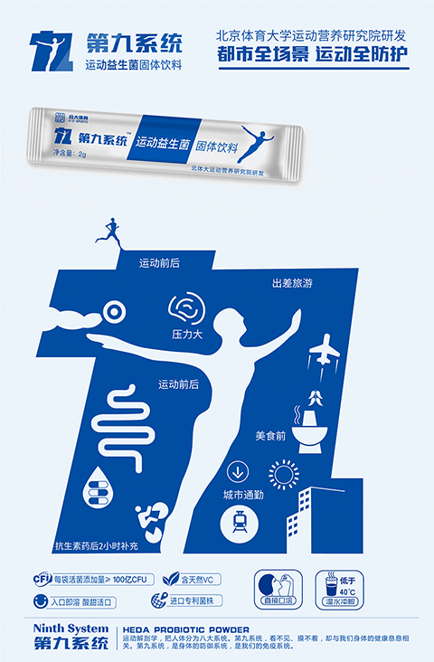 第九系統是我們為運動益生菌產品所創意的品牌名,注冊成為商標。